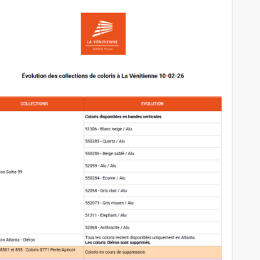 Coloris lames alu pour vénitiens 16 – 25 mm et 35 – 50 mm